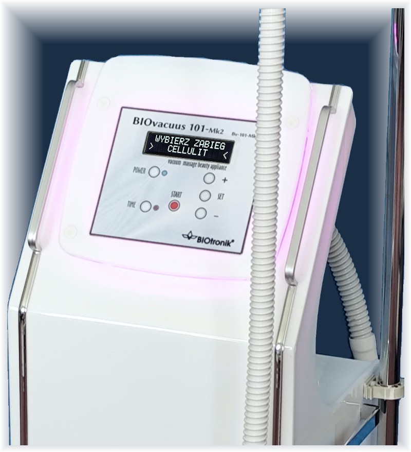 Aparat do masażu podciśnieniowego, dający możliwość wykonywania zabiegu kosmetycznego przy pomocy specjalnych, podciśnieniowych głowic. Metoda ta bazuje na wytwarzaniu podciśnienia przez aparat, które jest sterowane i kontrolowane przez mikrokomputer stanowiący integralną część aparatu. Według wielu ekspertów skuteczność zabiegów wykonywanych naszym urządzeniem dorównuje, o ile nie przekracza, innym mocno reklamowanym urządzeniom, a znacznie droższych.