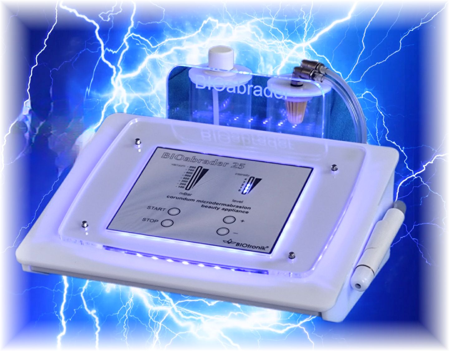 to w pełni profesjonalne urządzenie do wykonywania zabiegu mikrodermabrazji, wykorzystujące do tego celu właściwości ścierne korundu